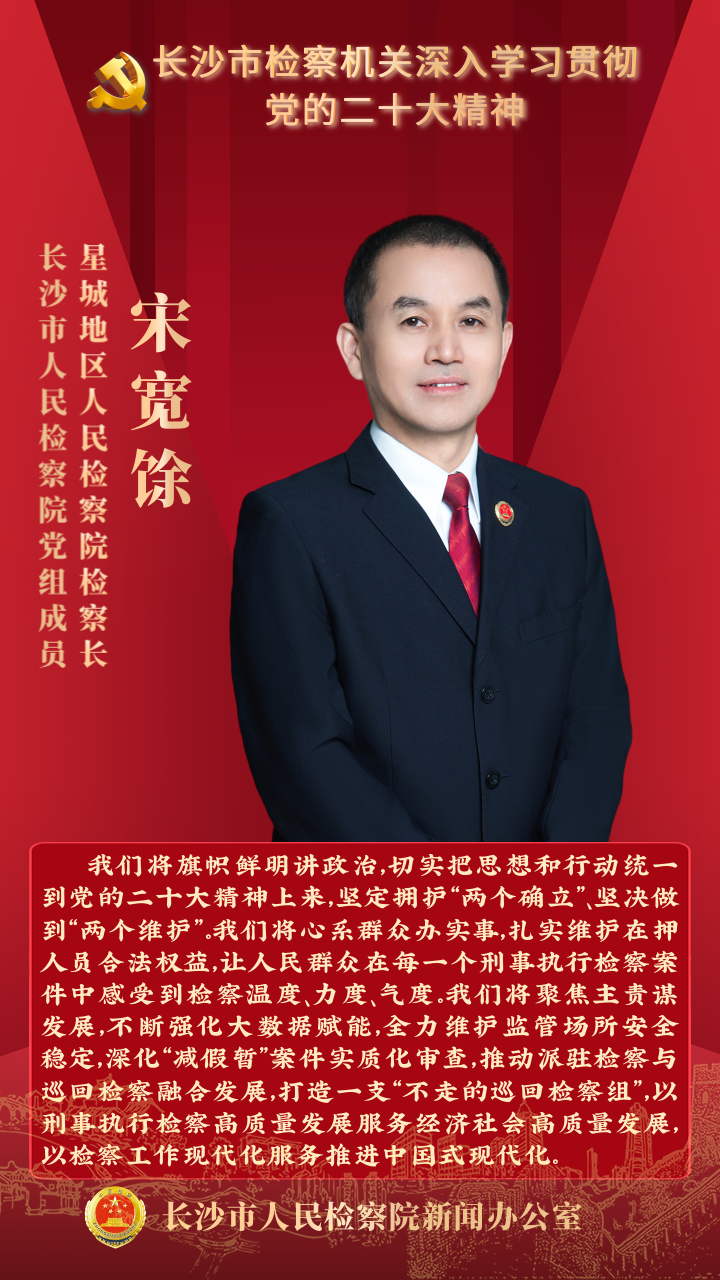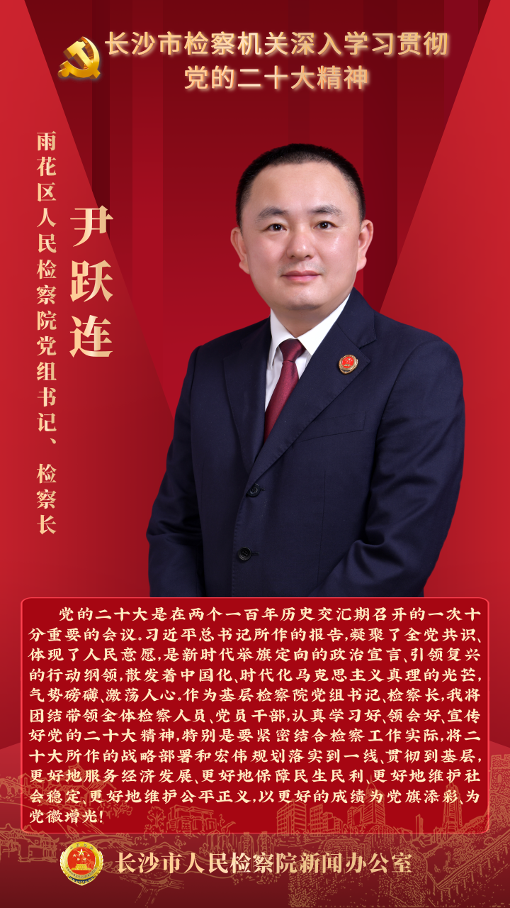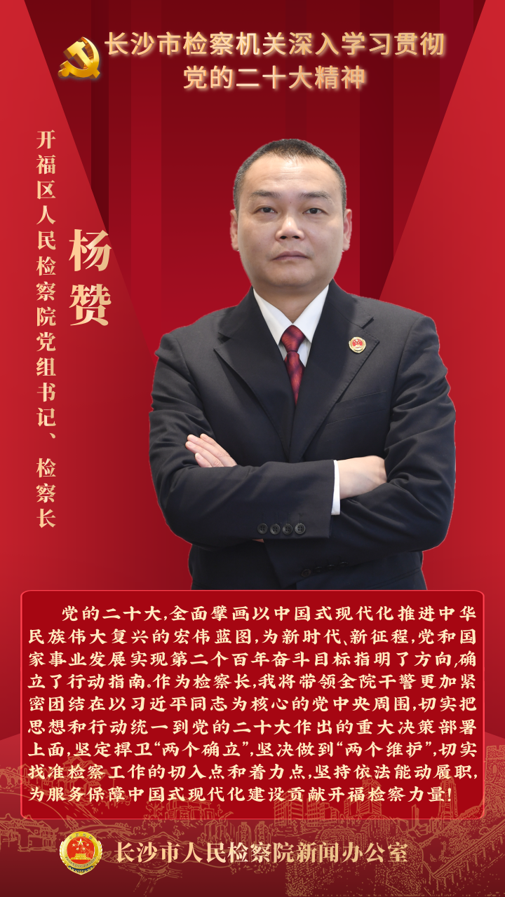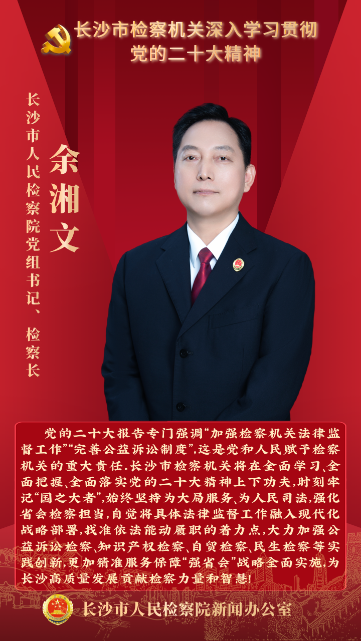 连日来,长沙市检察机关围绕如何学深、悟透、落实好党的二十大精神展开热烈讨论。全市两级检察院检察长带头用心体悟、深入思考,就“在纵深推进全面依法治国中贡献检察力量”谈思路、谈举措。让我们一起来听听检察长们怎么说。