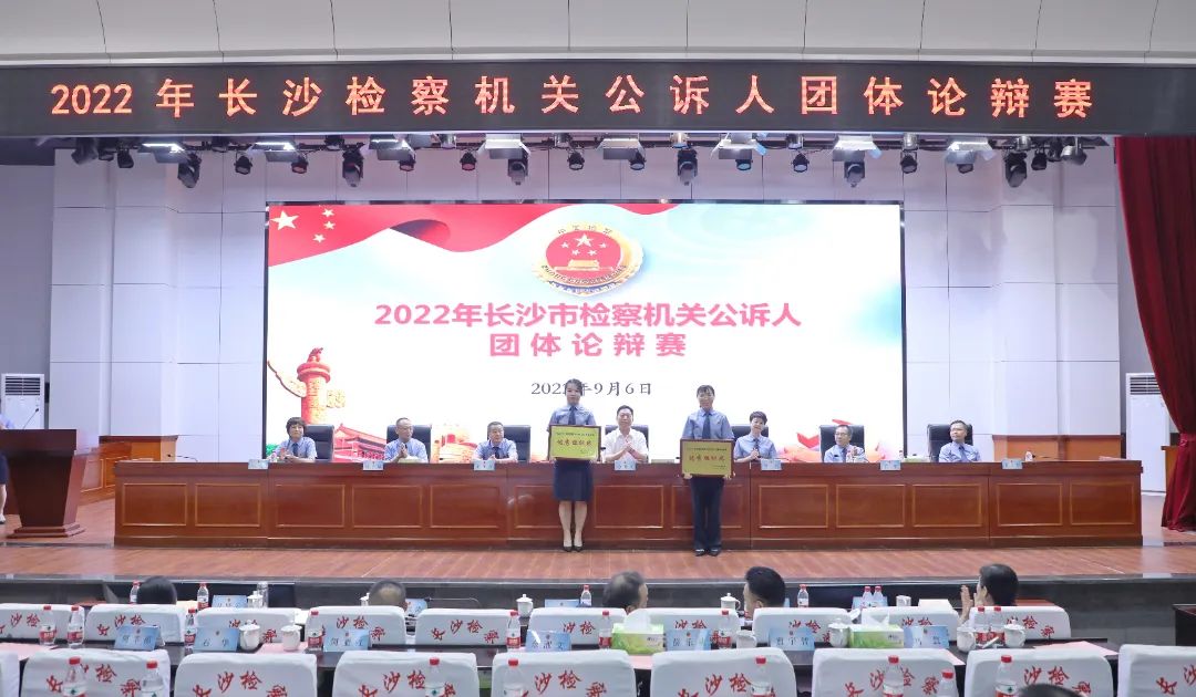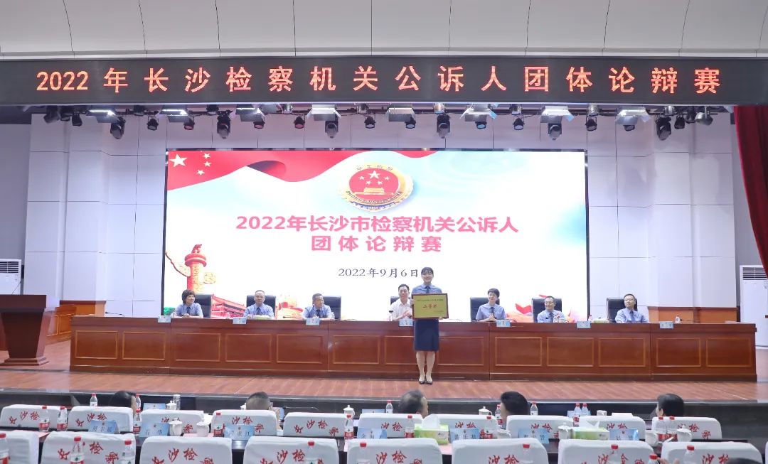 2022年9月6日,长沙市检察院举办全市公诉人团体论辩赛,来自长沙市检察院及九个基层检察院的18支代表队72名辩手同台竞技,奉上了9场精彩的团体论辩赛。湘潭大学教授张永红、湖南省检察院第三检察部主任王洪涛、长沙市中级法院副院长邹剑钧、长沙市公安局法制支队党委副书记、政委马晓云、长沙市司法局三级调研员郭灿霞担任比赛评委。比赛邀请了湖南省检察院、长沙市委政法委、长沙市中级法院、长沙市公安局、长沙市司法局有关领导到场观摩。
