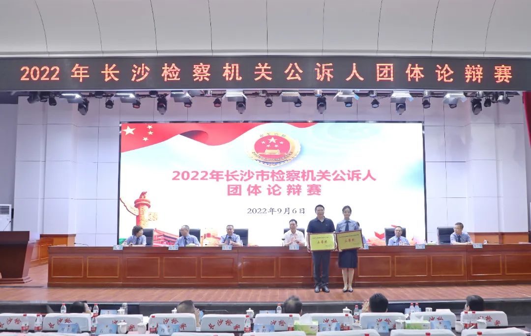 2022年9月6日,长沙市检察院举办全市公诉人团体论辩赛,来自长沙市检察院及九个基层检察院的18支代表队72名辩手同台竞技,奉上了9场精彩的团体论辩赛。湘潭大学教授张永红、湖南省检察院第三检察部主任王洪涛、长沙市中级法院副院长邹剑钧、长沙市公安局法制支队党委副书记、政委马晓云、长沙市司法局三级调研员郭灿霞担任比赛评委。比赛邀请了湖南省检察院、长沙市委政法委、长沙市中级法院、长沙市公安局、长沙市司法局有关领导到场观摩。