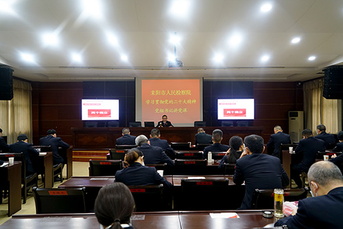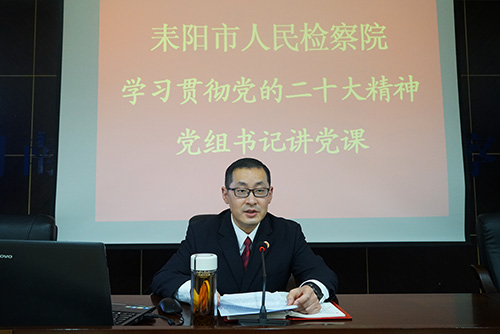 为推动学习贯彻党的二十大精神走深走实,让党的二十大精神不折不扣落实到检察履职全过程各方面,11月29日,耒阳市365体育旗下_beat365官方app安卓版下载_365bet投注网党组书记、检察长肖也邦以“踔厉奋发 勇毅前行 奋力推动新时代耒阳检察工作再上新台阶”为题给全院干警上了一堂主题鲜明、内容丰富的专题党课。