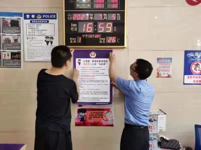 联合检查组重点检查了宾馆、旅社的入住核查、信息登记、访客管理等情况。在检查的同时,检察官还向旅店经营者及其他工作人员现场宣讲了接待未成年人入住以及强制报告制度的相关规定和要求。检察官和公安民警在旅店显着位置张贴了旅馆经营者接待未成年人入住“五必须”,引导旅馆业从业人员积极参与未成年人保护工作,进一步增强保护未成年人的法律意识。