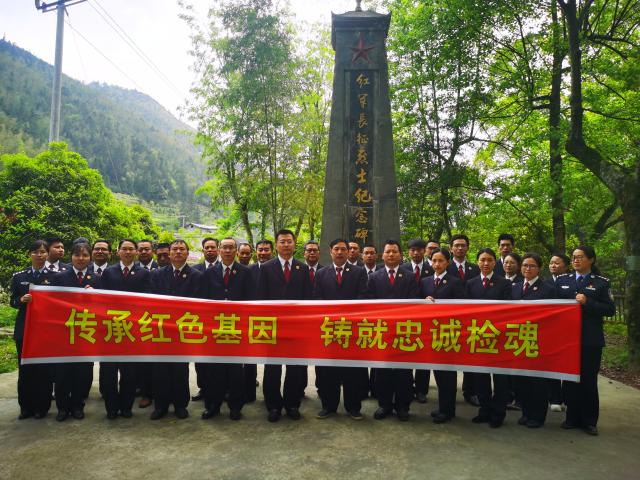 在红军长征烈士纪念碑前,党组书记、检察长唐杰向纪念碑敬献了花篮,并率领全体干警在纪念碑前重温了入党誓词,倾听了侗族草医游郎中救助红军的故事和一条棉裤的故事。机关第一、二支部开展了主题党日活动。