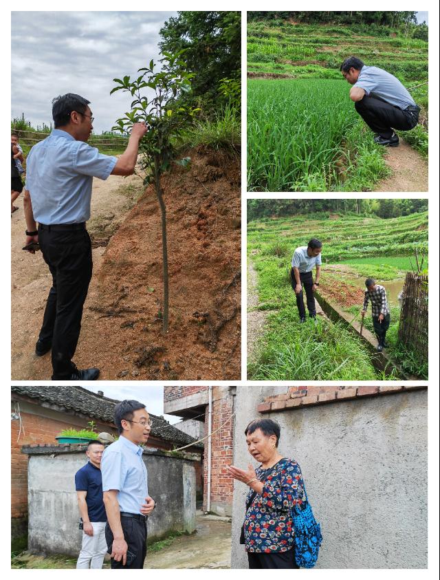 杨尊永还来到田间,向田里的老农询问农作物的种植和农业水渠的修建情况,并仔细查看了秧苗的成长。