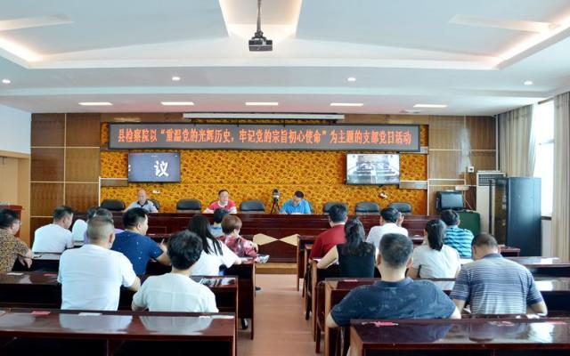 新宁县检察院以“重温党的光辉历史,牢记党的宗旨初心使命”为主题的全院党建会议现场
