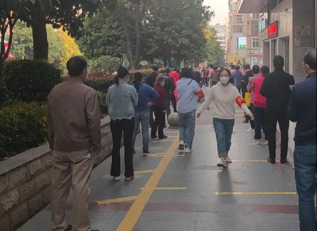 副检察长曾欢作为副点长值守邵府街高风险区,为路过的老人耐心引导前往低风险区核酸检测点