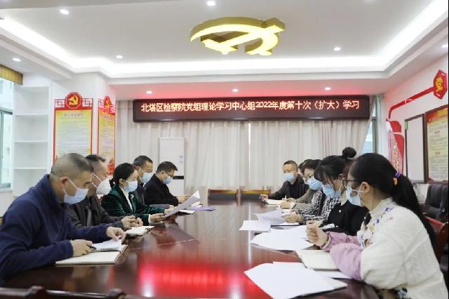 为推动党的二十大精神学习宣传贯彻走深走实,北塔区检察院先后通过召开党组扩大会、党组理论学习中心组学习会议等,专题学习了二十大报告。党组书记、检察长刘晓红强调:一是要深学细悟,以政治自觉把准精神实质。在全院迅速掀起学习宣传贯彻新热潮,把思想和行动统一到党的二十大精神上来,自觉在党的检察事业新征程上践行“三个务必”,以“六个必须坚持”为指引,坚决扛起以法律监督保障党的全面领导的重大政治责任。二是能动履职,以法治自觉服务发展大局。要不折不扣落实二十大报告中关于“加强检察机关法律监督工作”“完善公益诉讼制度”等重大部署,紧扣“四区二城”战略,坚持与党委政府同频共振、同向用力,服务党委工作大局、经济社会发展大局。三是固本强基,以检察自觉锻造过硬队伍。探索党建与业务深入融合的特色路径,以“永远在路上”的精神从严治检,进一步深化纠正“四风”和巩固队伍教育整顿成果,落实检务督察等自我监督机制,加强专业培训和实战练兵,健全完善业绩考评机制,打造一支党和人民信得过、靠得住、能放心的检察铁军。